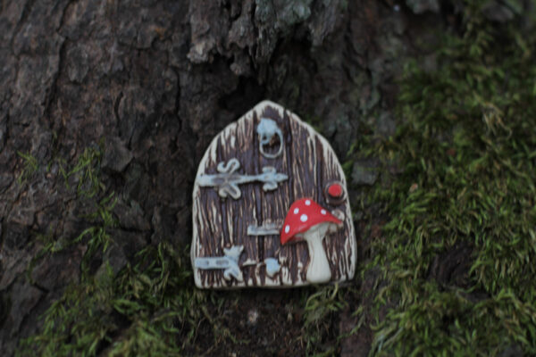 Handmade ceramic fairy house door. Place it somewhere magical.