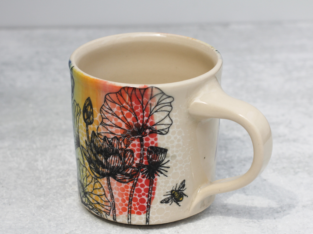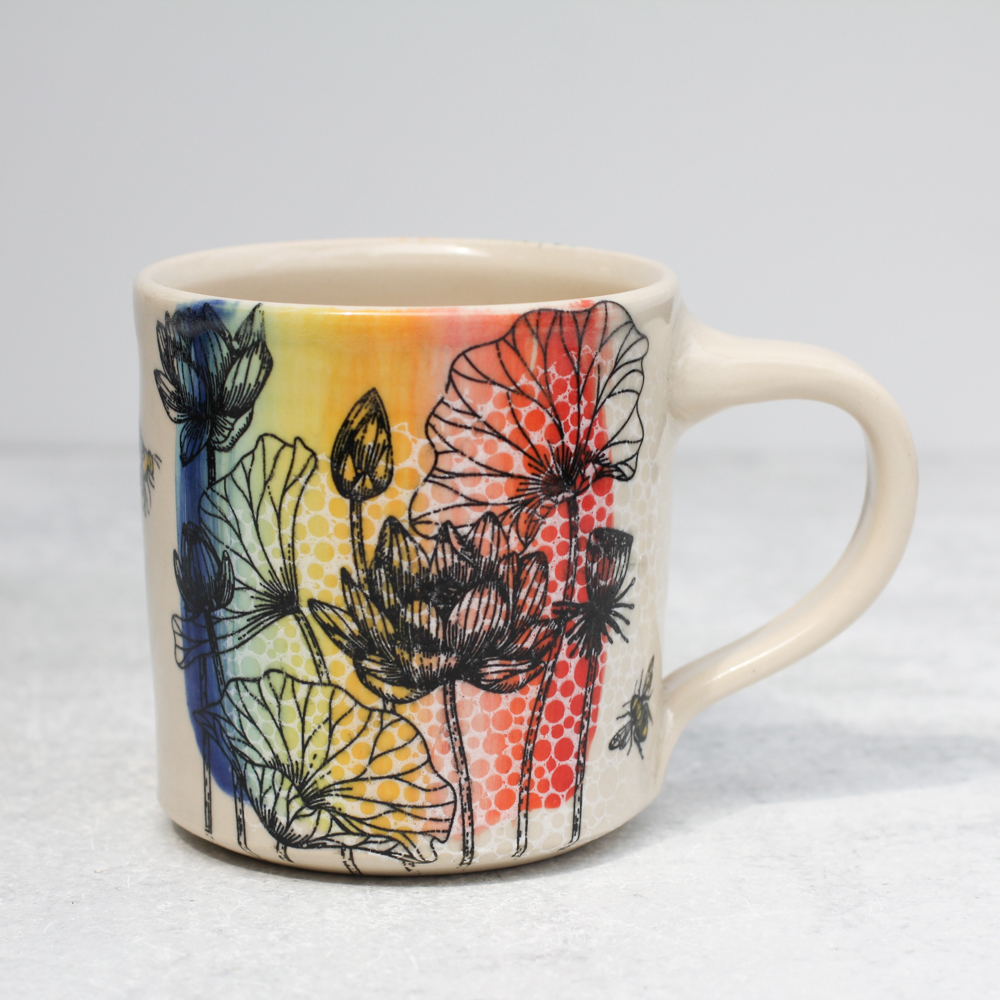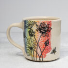 Wheel thrown and hand-decorated, my stoneware mugs are an everyday favorite. Made with great care and attention to detail, they are a comfortable weight, with a smooth handle. This mug holds approximately 14 ounces of liquid.