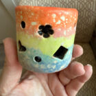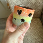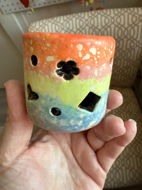 All pieces are made by hand in my Easthampton, Massachusetts studio. Each piece begins as white stoneware clay. First, the clay is thrown by hand on the potter’s wheel, forming the shape. For mugs and other items with handles, a coil of clay is joined to the side, and methodically pulled to form a smooth, comfortable handle. Following a bisque firing in the kiln, the piece is hand-decorated using a combination of hand-drawn underglaze transfer and slip-painting. Then the piece is hand-dipped in a clear glaze and fired once more in the kiln to make the finished product.