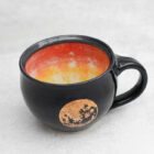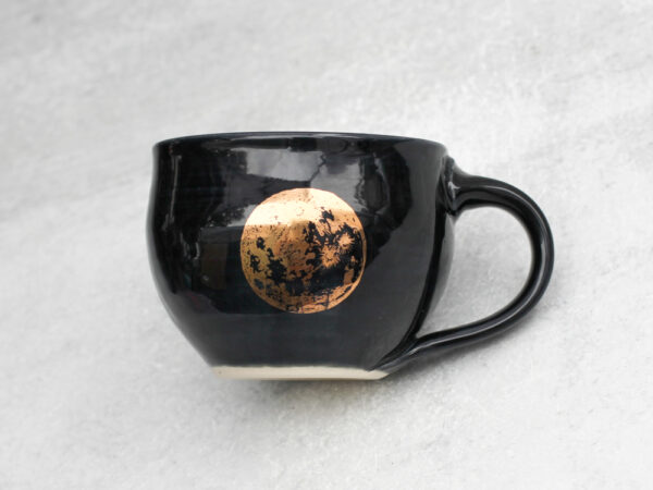 Process: Each piece begins as white stoneware clay. First, the clay is thrown by hand on the potter’s wheel, forming the shape. A coil of clay is joined to the side, and methodically pulled to form a smooth, comfortable handle. Following a bisque firing in the kiln, the piece is hand-decorated using a combination of hand-drawn underglaze transfer and slip-painting. Then the piece is hand-dipped in a clear glaze and fired once more in the kiln to make the finished product.