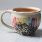 Wheel thrown and hand-decorated, my stoneware mugs are an everyday favorite. Made with great care and attention to detail, they are a comfortable weight, with a smooth handle. Sizes vary due to the handmade nature of my work. Holds approximately 9 ounces of liquid.