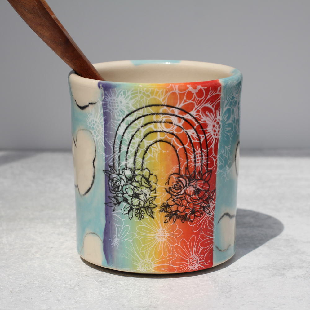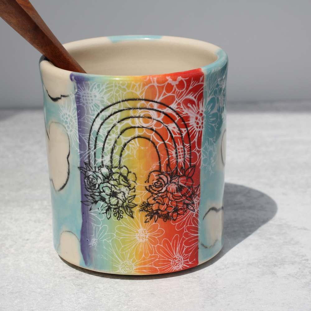 Utensil Holder,Small – Rainbow and clouds